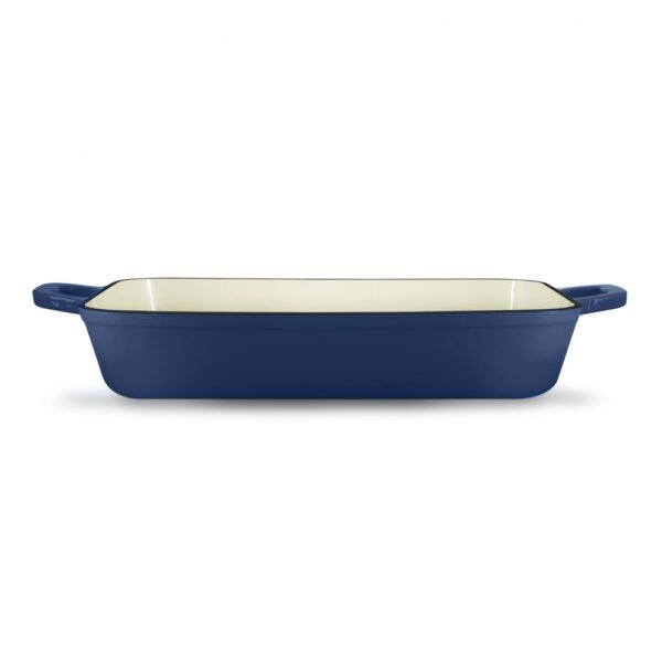 Grand Feu rectangular blue baking dish is perfect for cooking both sweet and non-sweet dishes with a crispy crust.