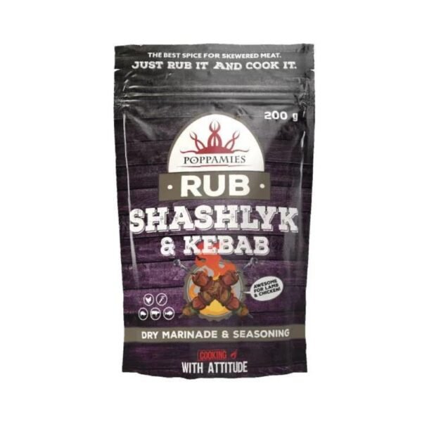 Poppamies Shashlyk & Kebab Rub is the perfect blend for seasoning spit-roasted meat. This deliciously hot blend is made with the traditional Moroccan spices of Ras El Hanout and a little of Poppamies magic, as usual.