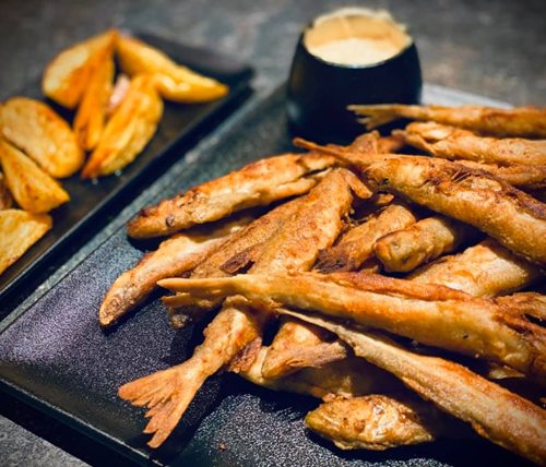 - Peel the prawns and season them with garlic oil, lemon juice, olive oil with herbs, and sprinkle with herb salt. Let them marinate in the fridge for about an hour.