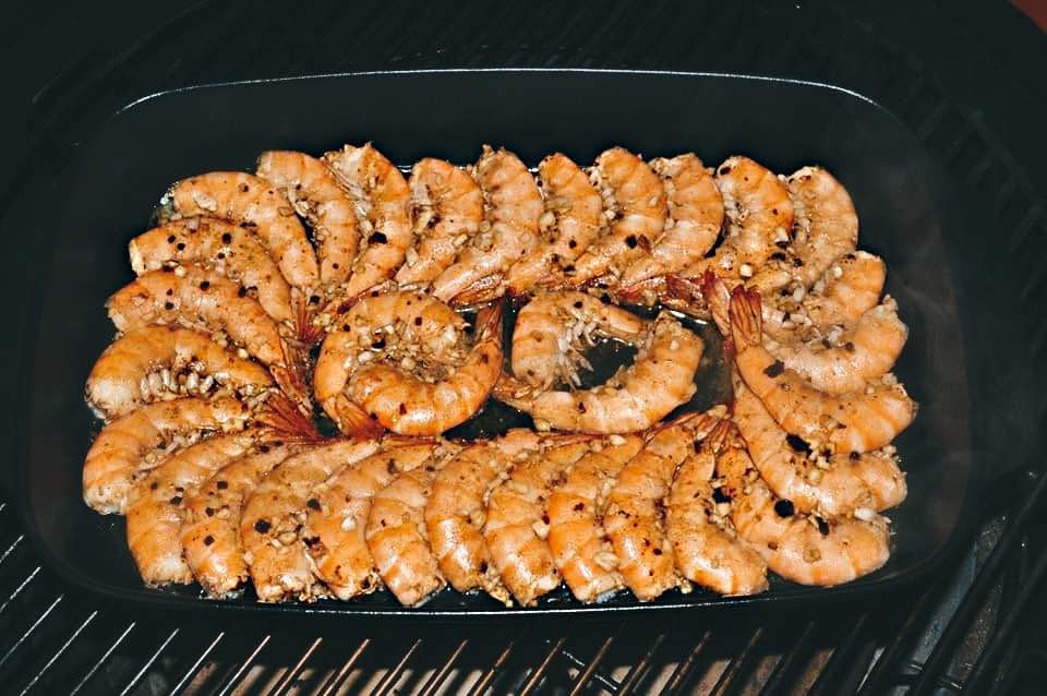 3. Cook indirectly at 200°C for 12–15 minutes. Do not turn the prawns during cooking.