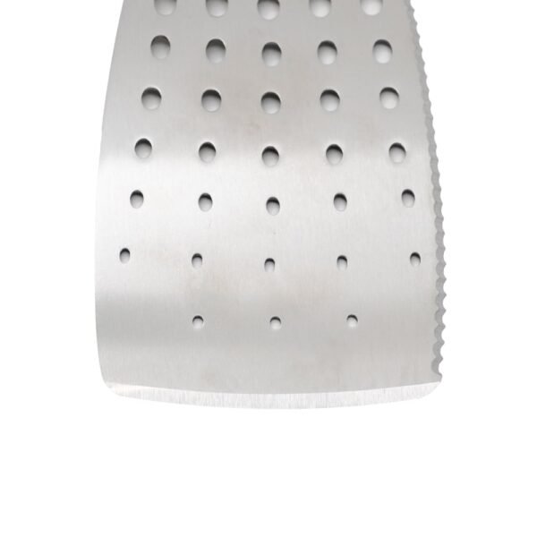• With a sharp edge for flipping larger or more fragile foods, such as fish, hamburger patties and steaks.