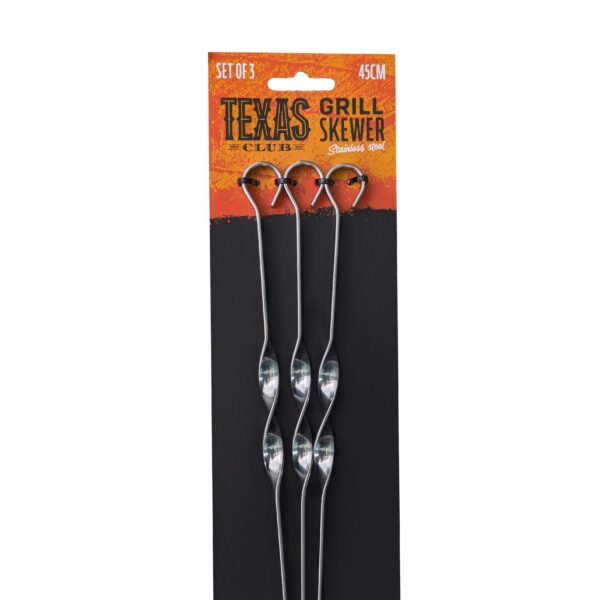 Texas Club 3-Piece Stainless Steel Skewer Set – skewers designed for those who know that great kebabs don’t happen by accident – they’re made with skill and a well-turned skewer. This is the perfect tool for grilling kebabs, vegetables, meats, and more. These skewers offer plenty of space for cooking over charcoal, gas, or kamado-style grills – with precision and control in every turn.
